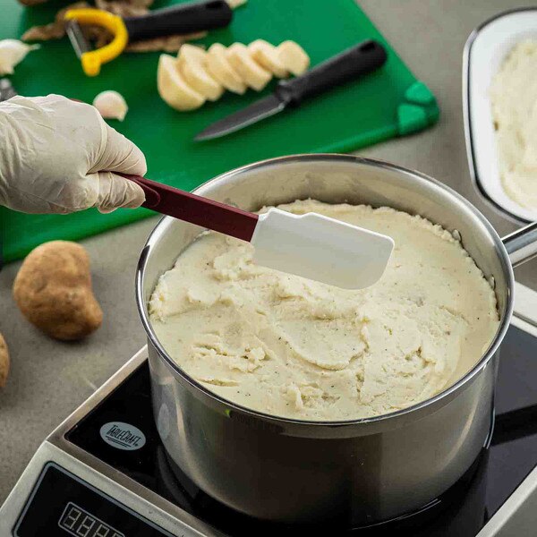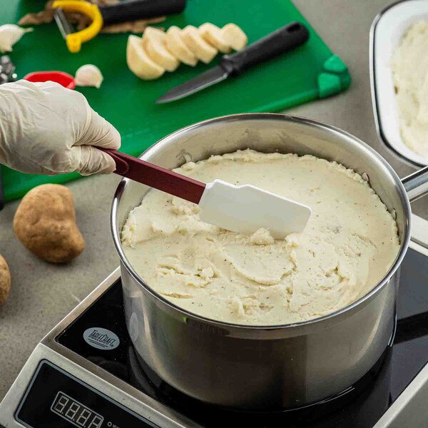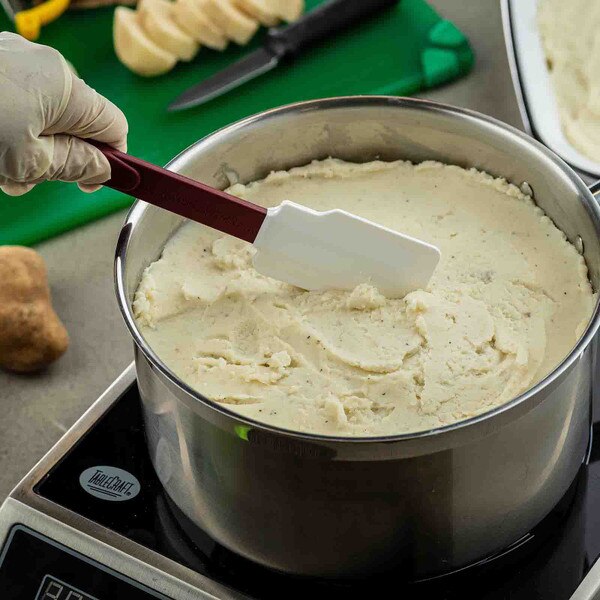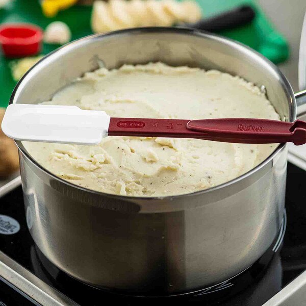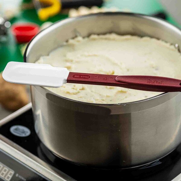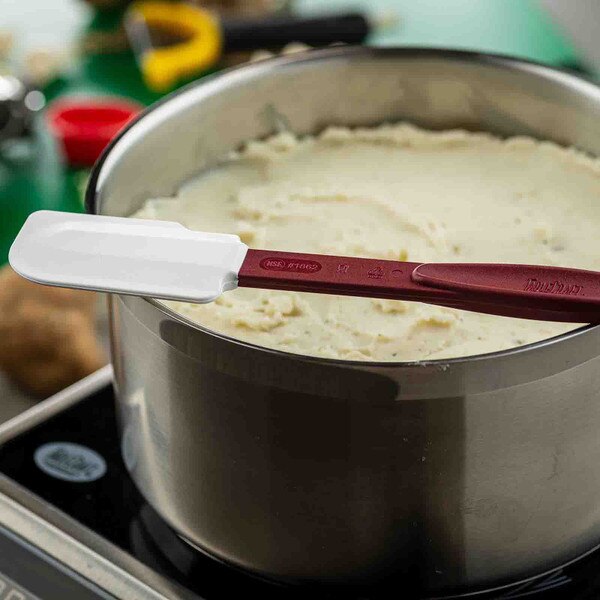 Featuring a silicon blade and red nylon handle, our high heat spatulas are resistant up to temperatures of 500°F (260°C). Notched, stain-resistant scraper blades cleanly scrape sides of pans or bowls without scratching them. Durable, flexible design and BPA Free.