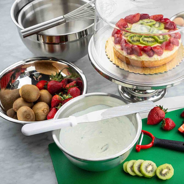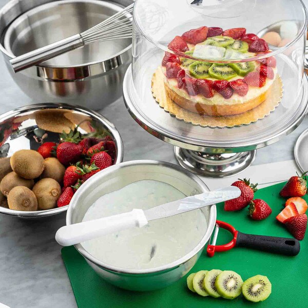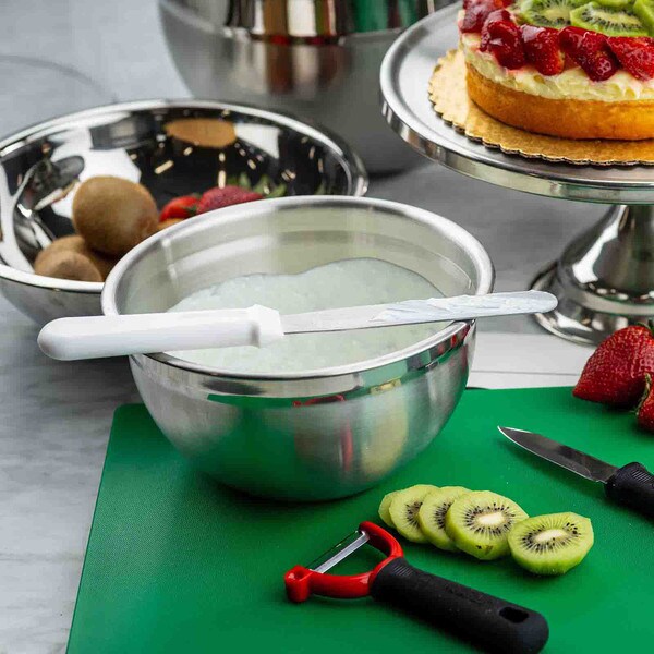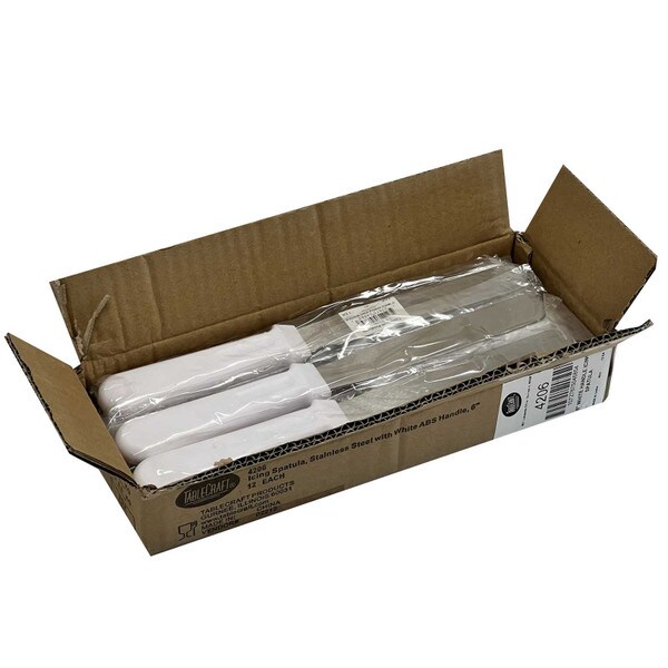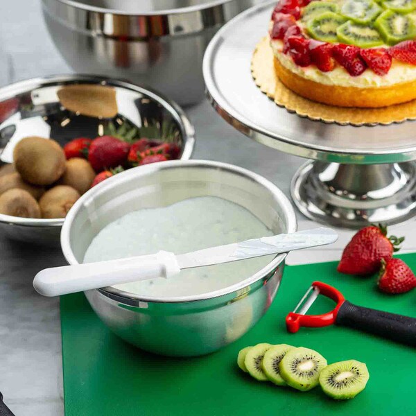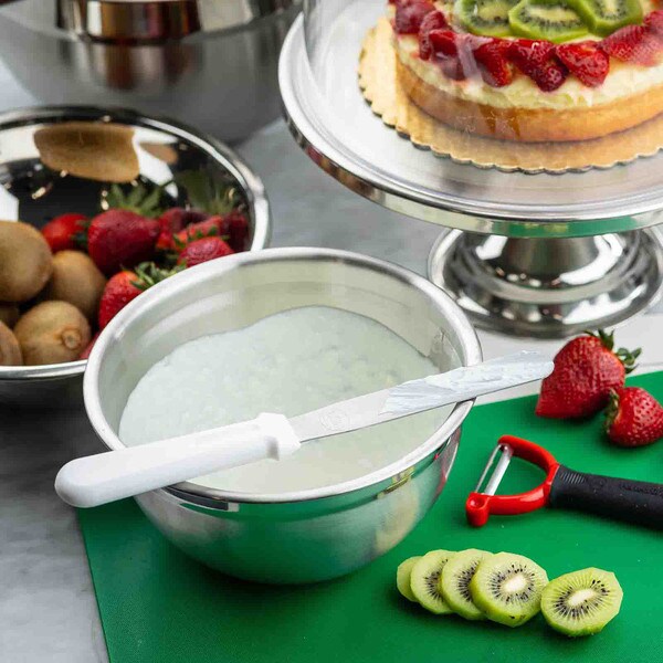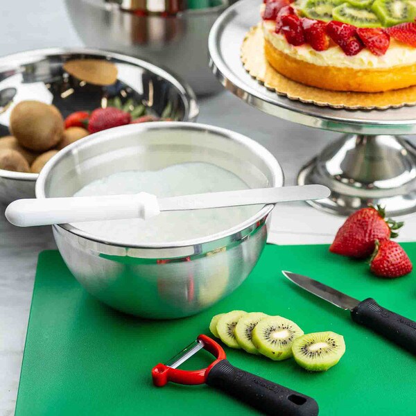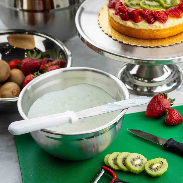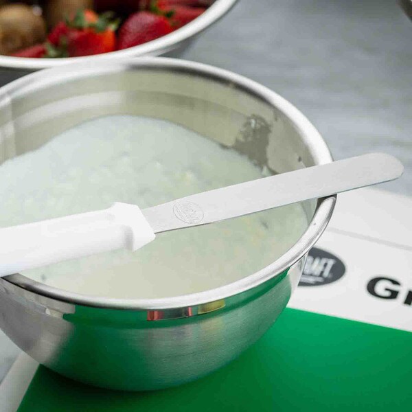 Create the perfect finishing touches as you ice your cakes or start cooking crepes with this 6" icing spatula with an ABS handle. The blade's flat, rounded design, it is perfect to use for smoothing and evenly distributing icing on large, flat surfaces. Additionally, it works well to spread crepe batter.