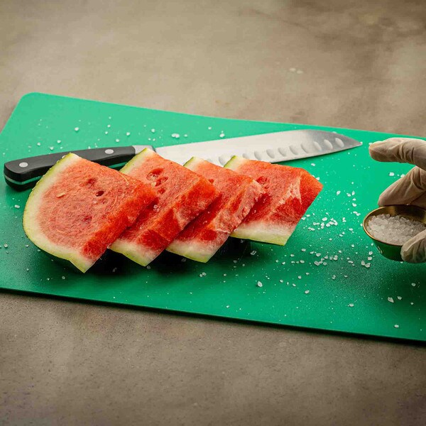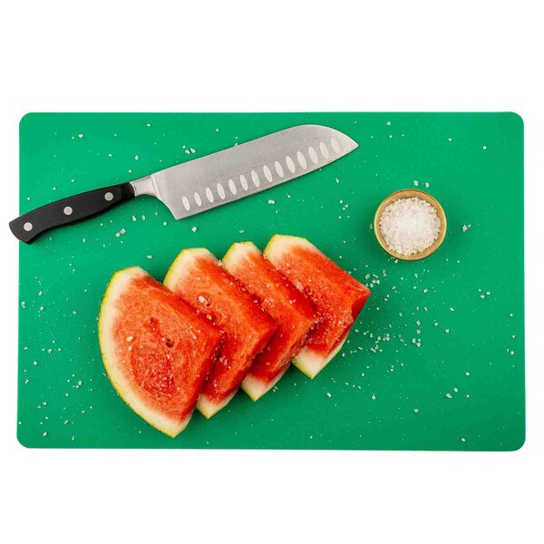 Color-code your prep area with our collection of polyethylene Cutting Boards to reduce the risk of cross contamination and promote Hazard Analysis and Critical Control Points (HACCP) guidelines. Our boards are easy to clean and non-absorbent. They also protect your worktop and knives. Add a damp towel underneath to prevent any slipping. Available in range of sizes and colors.