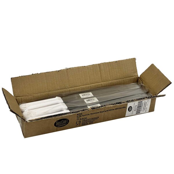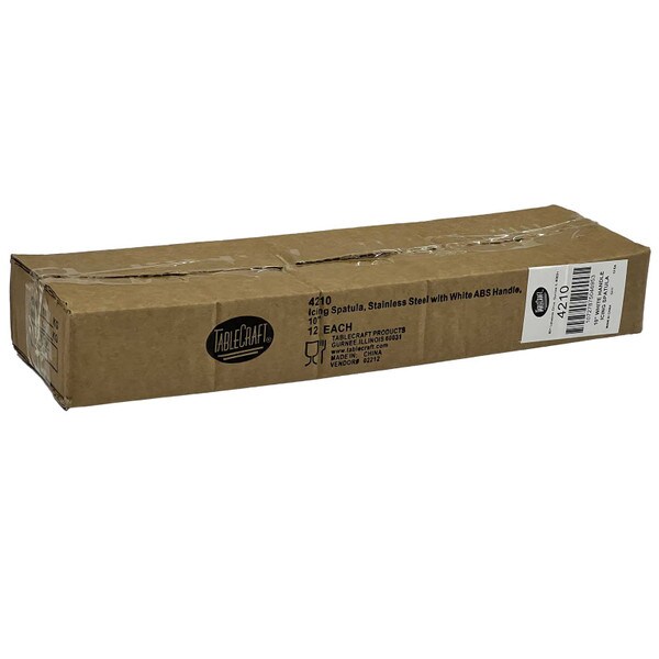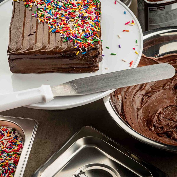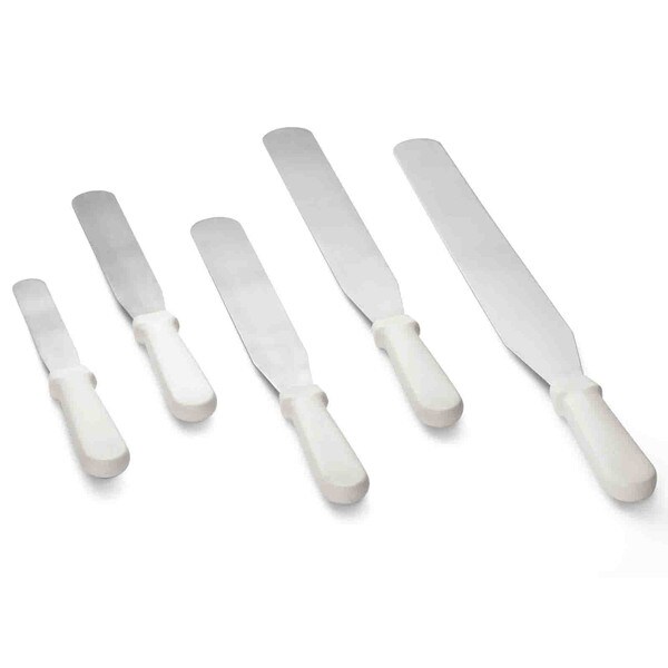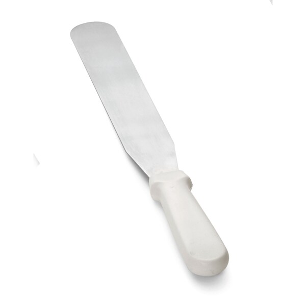 Create the perfect finishing touches as you ice your cakes or start cooking crepes with this 10" icing spatula with an ABS handle. The blade's flat, rounded design, it is perfect to use for smoothing and evenly distributing icing on large, flat surfaces. Additionally, it works well to spread crepe batter.