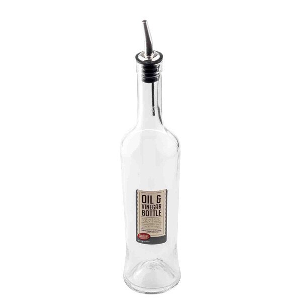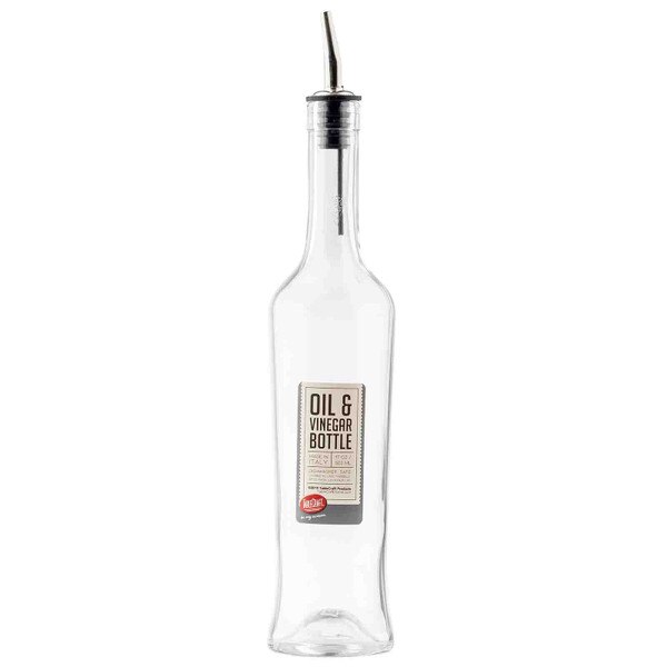 Whether you're pouring fresh olive oil, drizzling sauces or storing salad dressings, TableCraft is sure to have the right bottle for you! This popular 17 oz glass bottle features clear glass for a sophisticated look on any tabletop or condiment collection. Its stainless steel pourer is threaded for a tight fit and even pour.