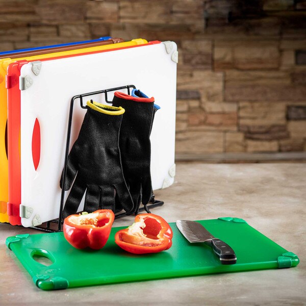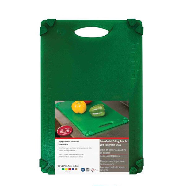 Upgrade your prep stations with our Grippy™ Cutting Boards -- designed for safety, precision, and durability. Each board is color-coded to support HACCP compliance, reducing the risk of cross-contamination and ensuring best food safety practices. The integrated embossed measurements help operators achieve accurate cuts and portion control, while the non-slip corner grips keep the board securely in place during use. Built for the demands of commercial kitchens, these boards are dishwasher safe, heat resistant, chemical resistant, and warp resistant. An integrated handle adds convenience, making them easy to carry, store, and clean. Reliable, sanitary, and built to last -- Grippy™ Cutting Boards are the professional’s choice.