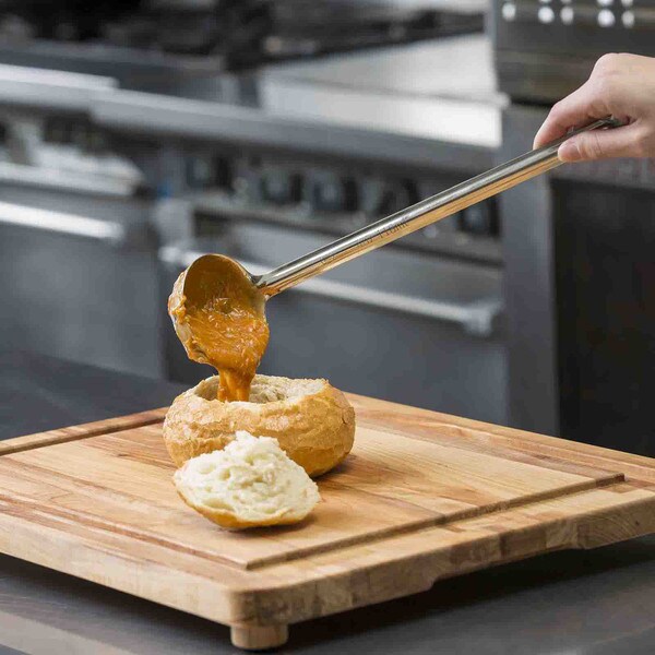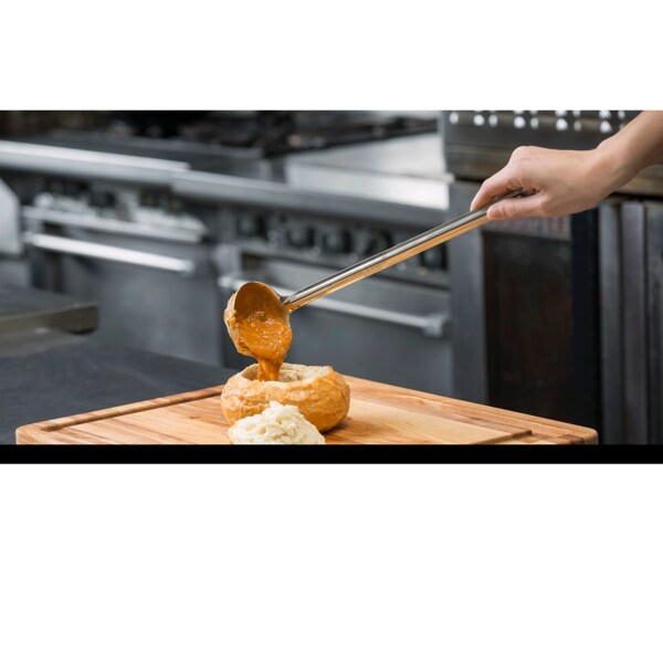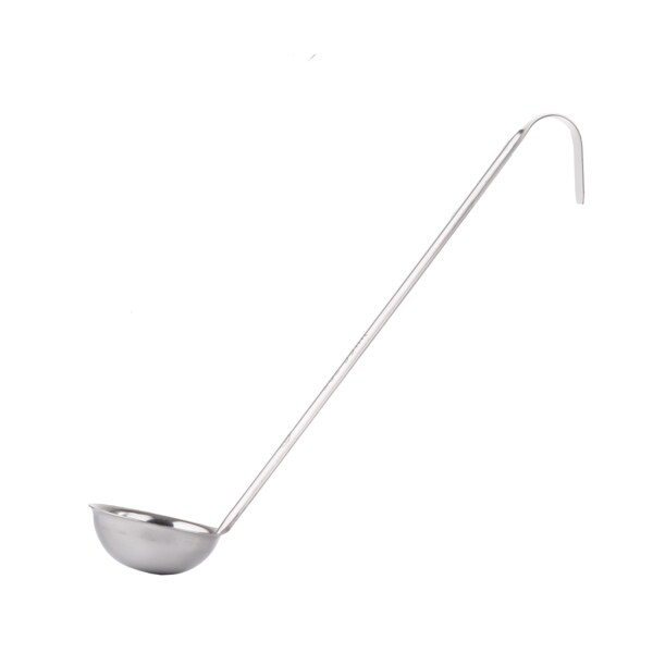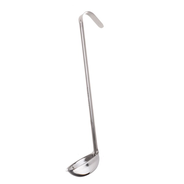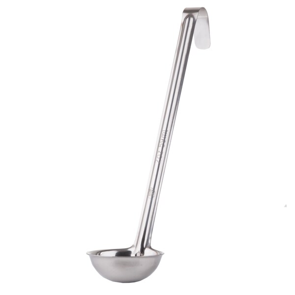Whether you're measuring, portioning, or simply scooping, this 2 oz ladle is the perfect utensil for the job! Not only is it made of Stainless Steel, but it is fashioned out of a single piece, so cleaning is easier than ever. With a built-in hook at the end of the handle, it's designed to hang on the side of a pot or on a rack for simple storage.
