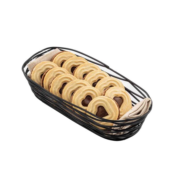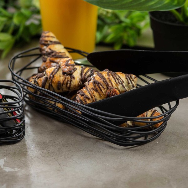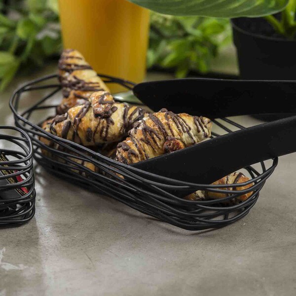 Serve-up a masterpiece with the Artisan Collection Oblong Basket. You'll love the durable, black powder-coated steel construction of these lightweight baskets, to serve bread, bagels, fruit or even towels, napkins or decorative soaps. Stackable for easy storage. Mix and match with other items from the artsy Artisan Collection for a tidy and cohesive presentation.