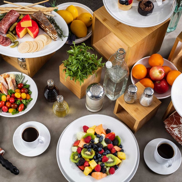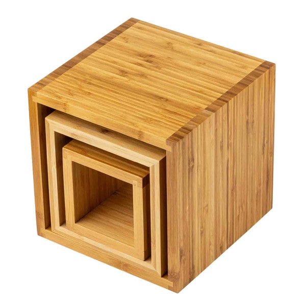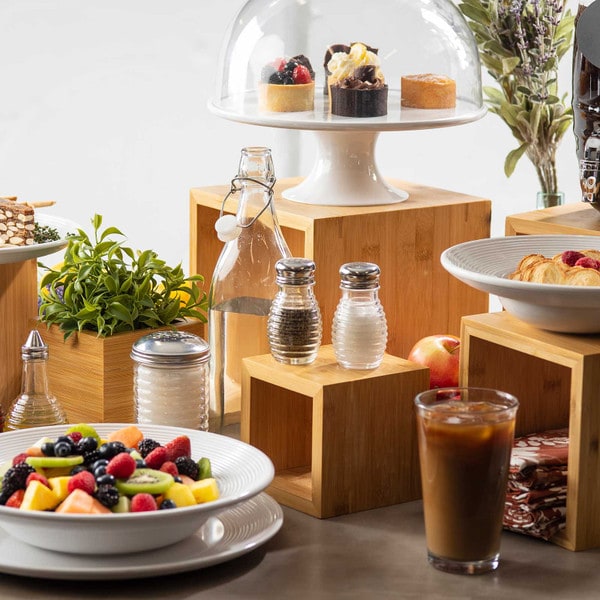 Elevate your presentation with our set of three Box Bamboo Risers, designed to showcase your culinary creations with style and sophistication. These versatile risers can be used individually or combined to create a dynamic display, allowing you to highlight dishes and desserts on or inside the box. The natural bamboo finish adds a touch of refinement to any setting, while the modular design lets you mix and match with other sets to achieve a unique and personalized look. When not in use, the risers conveniently nest together for compact and effortless storage. Perfect for enhancing buffet displays, catering events, or any occasion where presentation matters.