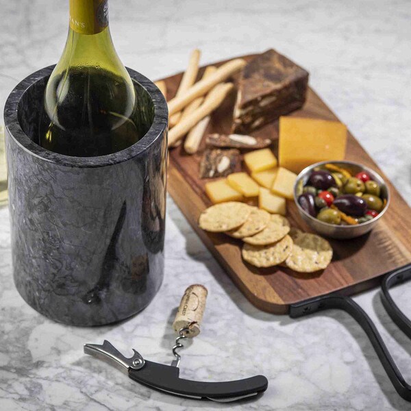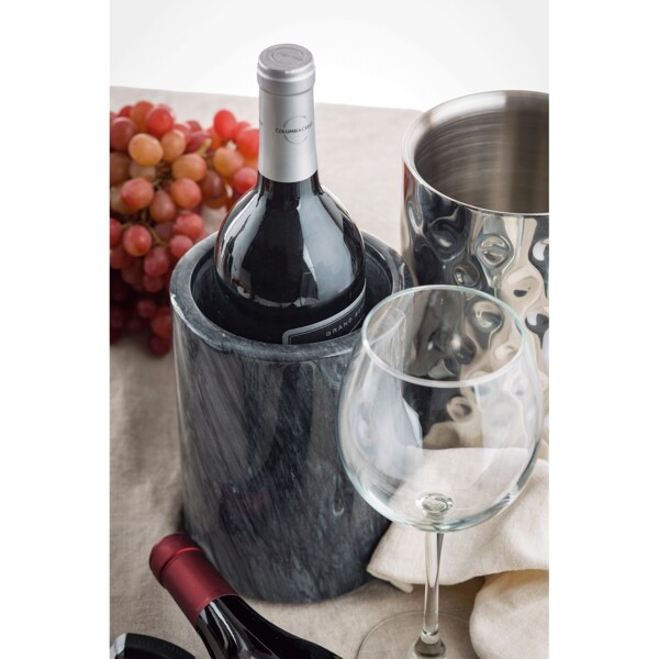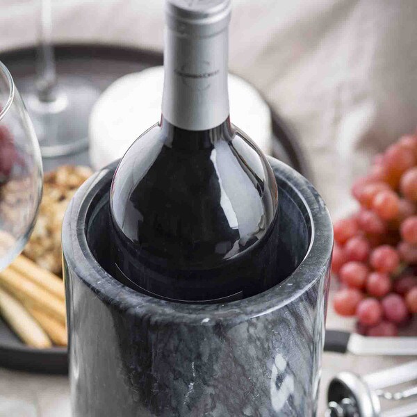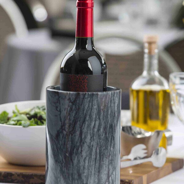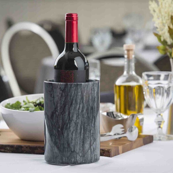 Add a touch of elegance while serving chilled wine or champagne using our stone cooler, made of polished marble. Freeze bucket before use for the best results. When not serving your favorite white, use it to store and display wooden spoons or other cooking utensils on the counter for a perfectly elegant look. It's heavy, marble construction makes it sturdy and un-tippable.