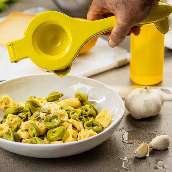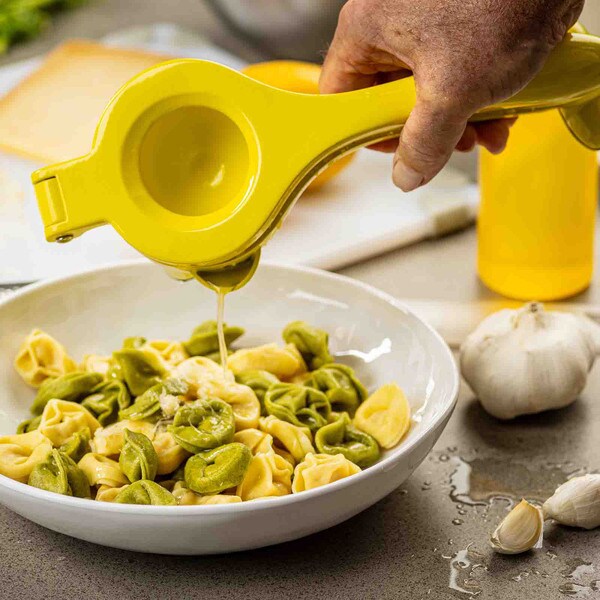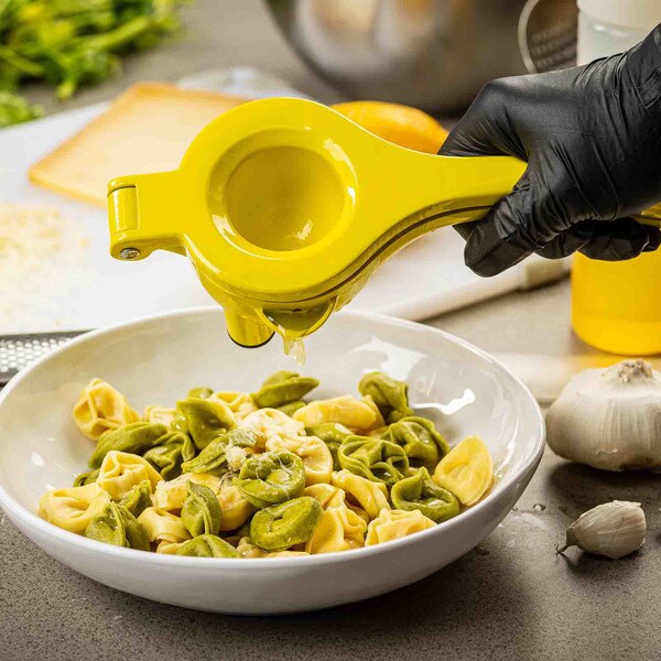 Designed for efficient extraction, this hand-held citrus squeezer won't waste an ounce of juice. A convenient alternative to reamers, this tool yields juice that's pulp, seed, and peel-free without spritzing juice on your hands during use. It's durable and easy to identify, use, clean, and store.