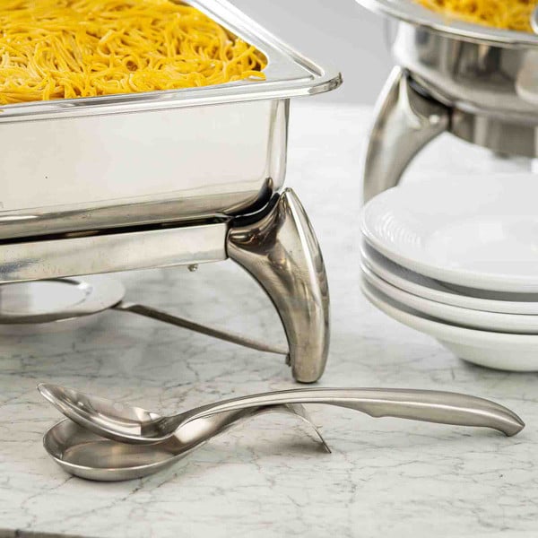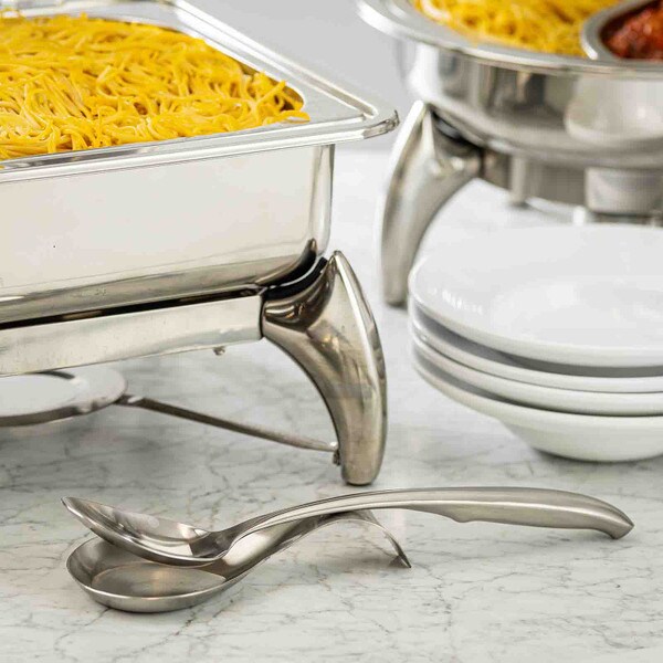 Deliver smooth, mess-free service with the Dalton Collection Solid Serving Spoon—designed for control, durability, and upscale presentation. The curved handle keeps the utensil in place during use, while the brushed stainless steel finish offers a modern, easy-to-clean aesthetic. The mirror-finish solid bowl is ideal for serving casseroles, sides, grains, or sauced entrées without dripping. A reliable choice for buffet stations, catered spreads, and banquet service.