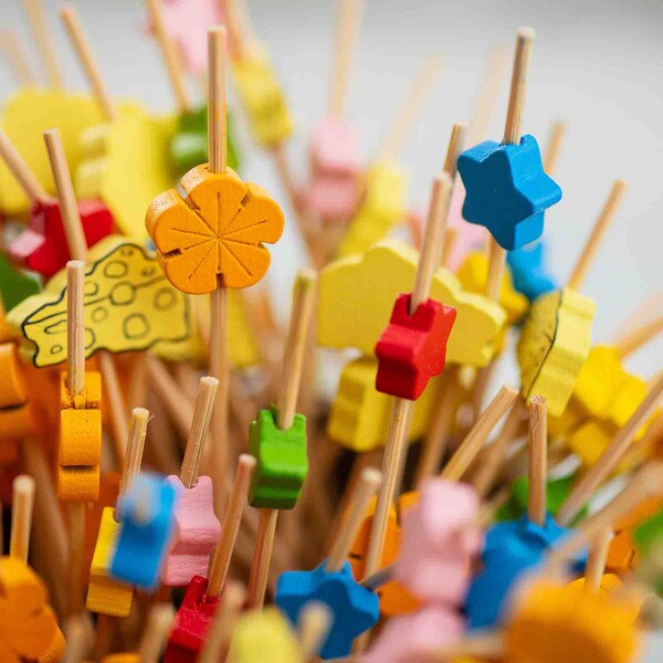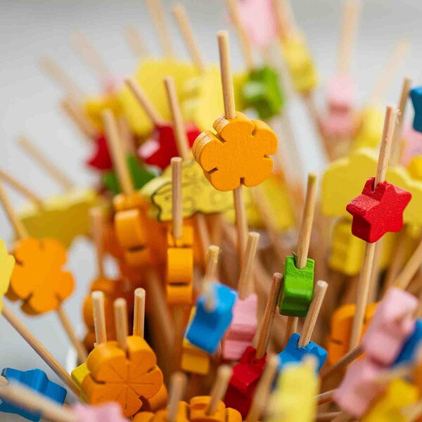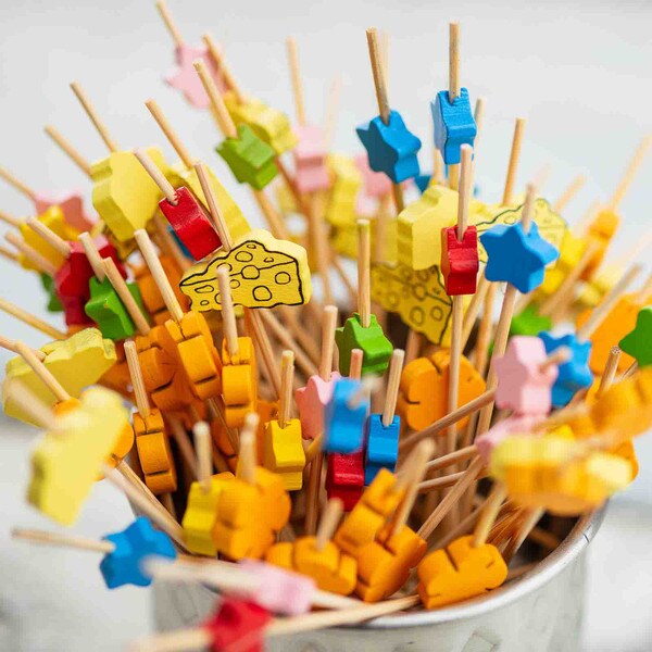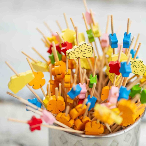 Decorate your fun snacks, game day treats, holiday goodies, or cocktails with our assortment of decorative picks! Not being picky here, but our disposable wood picks, utensils and serveware are intended for single use only.