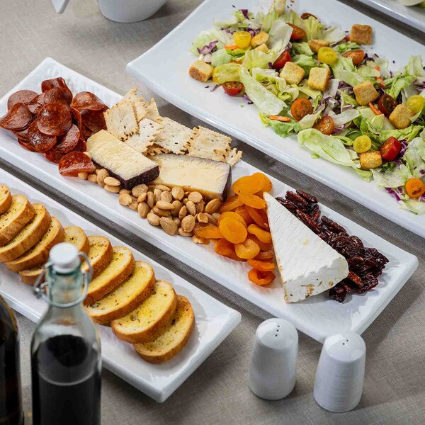 Create fresh, innovative buffet presentations and beautifully arrange your entrees, appetizers, tapas, and desserts in this Frostone Collection tray! Featuring a slight depression for placing food and edges that gently curve upward for a stylish yet subtle framework. Made of break resistant melamine, it resembles the upscale look of china without the risk of breakage. Ready to meet the demands of your high traffic restaurant or buffet line, this lightweight dish is easy to transport, store, and clean.