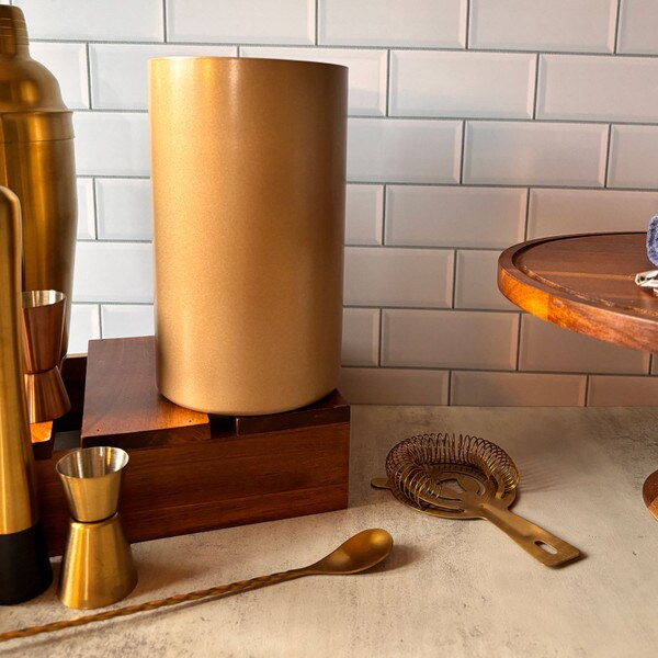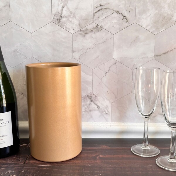 Modernize your wine cooler options with our sleek Wine Coolers. Double wall Stainless Steel construction will reduce condensation while keeping bottles chilled. Freeze bucket before use for the best results. When not serving your favorite wine, use it to store and display wooden spoons or other cooking utensils on the counter for a sleek modern look.
