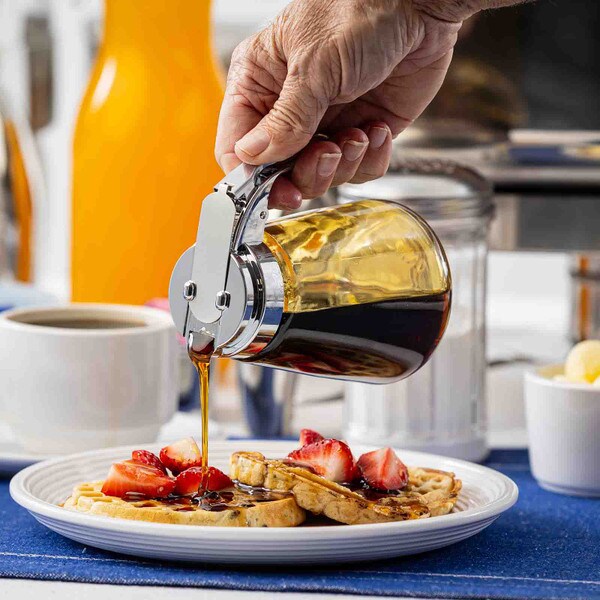 Elevate your breakfast service with our Modern Glass Syrup Dispenser, designed for smooth, mess-free pouring. Crafted from durable, sturdy glass, this dispenser stands up to daily use in restaurants, cafés, and diners. The easy-grip handle and thumb-operated spout give customers full control, allowing them to drizzle the perfect amount of maple syrup, specialty blends, or other sweet toppings onto their favorite dishes. Sleek, functional, and built for everyday service, this dispenser is a must-have for any breakfast or brunch setup!