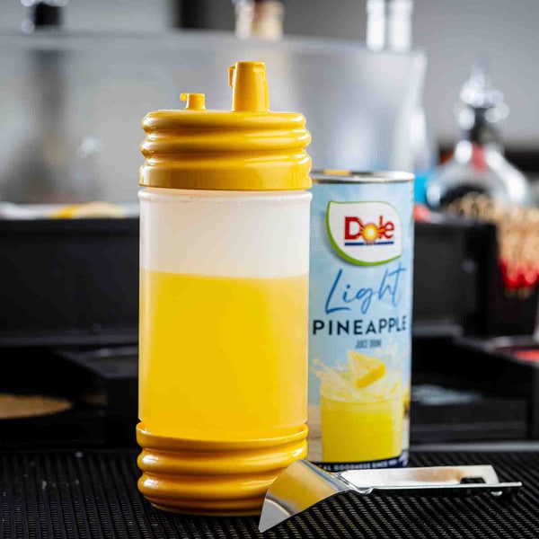 Easy-pour natural bottle with low profile top – fits into tighter spaces behind the bar. Color-coded top for easy identification and quick selection at busy times. Complete set includes: container, low-profile top with color-coded cap for easy storage. Assorted packs include 2 of each color: red, green, brown, white, orange and yellow.