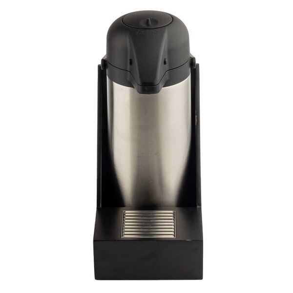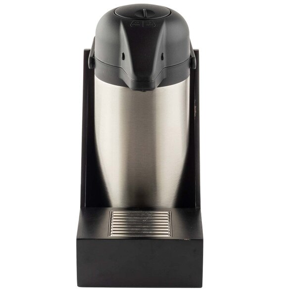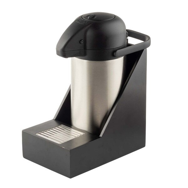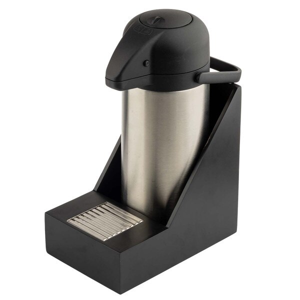 Elevate your beverage station with our elegant black Airpot Rack Holder -- designed to showcase and securely hold a single airpot in style. Perfect for self-serve setups in hotels, conference centers, offices, and events, this rack includes a stainless steel drip tray and reservoir to keep service clean and mess-free. A sleek, functional solution that brings polish and organization to any coffee or buffet line.