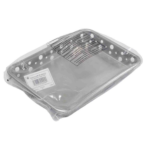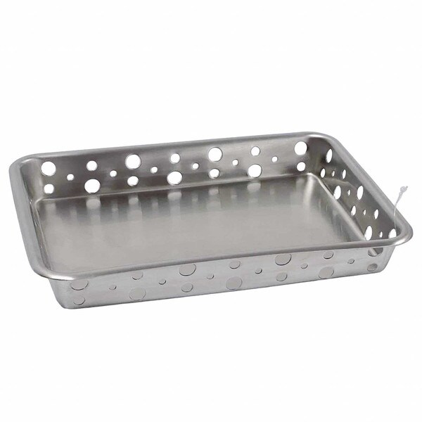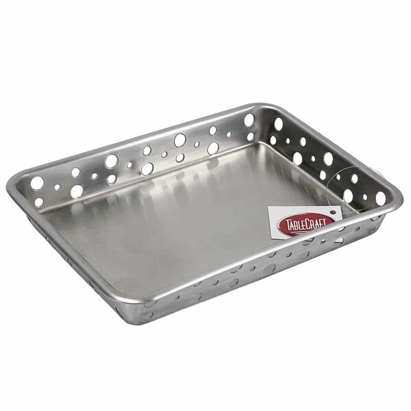 Serve with an edge of industrial elegance. This 9" Rectangular Serving Tray features a sleek stainless steel surface surrounded by decorative stamped circle cutouts -- perfect for adding a modern twist to food presentation in restaurants, cafés, and catering setups. Sturdy enough for daily use and stylish enough for elevated plating, this tray is ideal for serving sliders, appetizers, desserts, or drink flights. The perforated rim adds ventilation to help keep fried foods crisp while creating visual appeal on every tabletop.