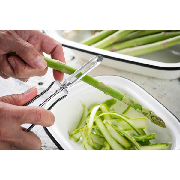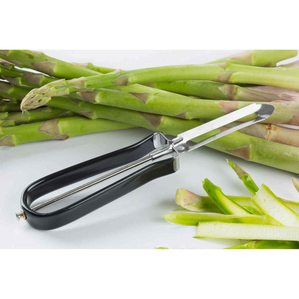 Easily peel and prep vegetables in your kitchen with this 6" swivel vegetable peeler with a straight stainless steel blade. This tool is built to offer long-lasting durability and you can create fruit garnishes or quickly peel potatoes, carrots, and cucumbers in time for dinner service.
