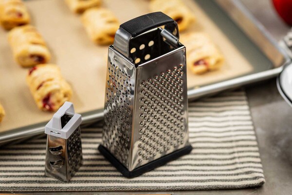 - Features four sides: fine grating, coarse grating, zesting, and slicing