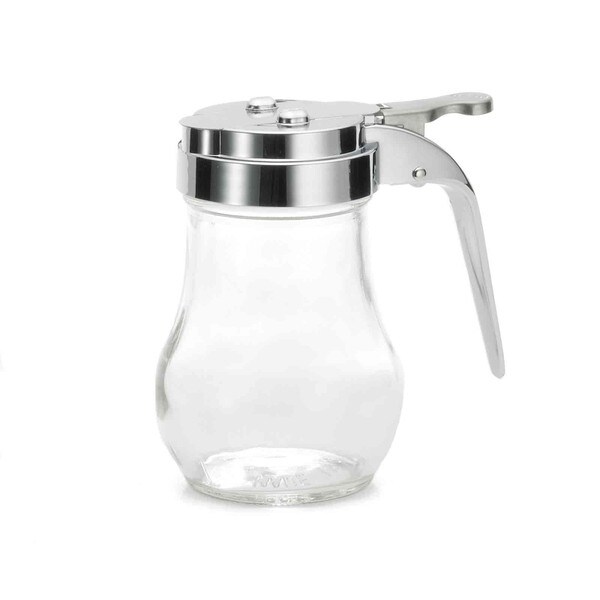6 oz Teardrop Glass Syrup Dispenser, Chrome Plated Plastic Top