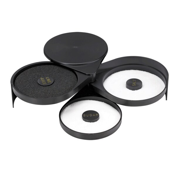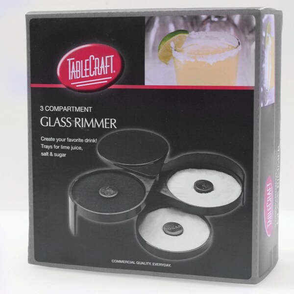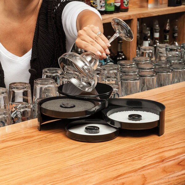 Impress friends and colleagues at your next cocktail party with our Triple Glass Rimmer. The professional set includes 3 swing-out trays and 1 sponge tray to prepare perfect cocktails, specialty drinks and shots with a salt or sugar rim. Rimmer closes up when not in use.