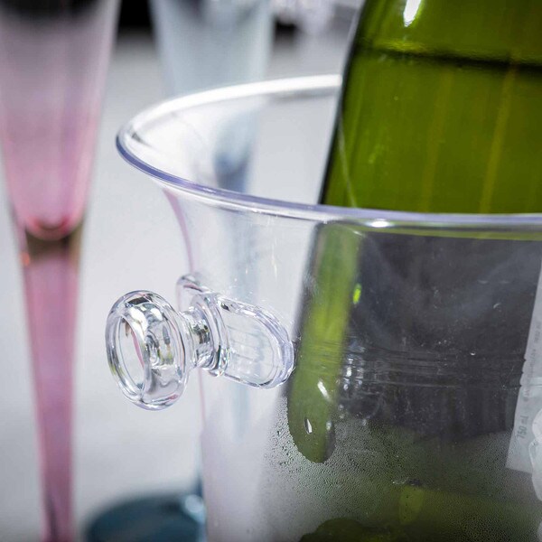 Allow guests to see the bottle they are drinking whilst keeping it cool with our clear ice bucket. Keep wine or champagne at the right temperature for longer at the table. Clear construction pairs with all décor for a neutral look. Break-resistant SAN plastic is perfect for use during room service.